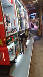 Seine bereits abgelaufene Sicherheitsüberprüfung wurde erneuert und er ist auch wieder mit den wichtigsten Materialien bestückt, welche nicht mit auf das neue HLF übernommen wurde.