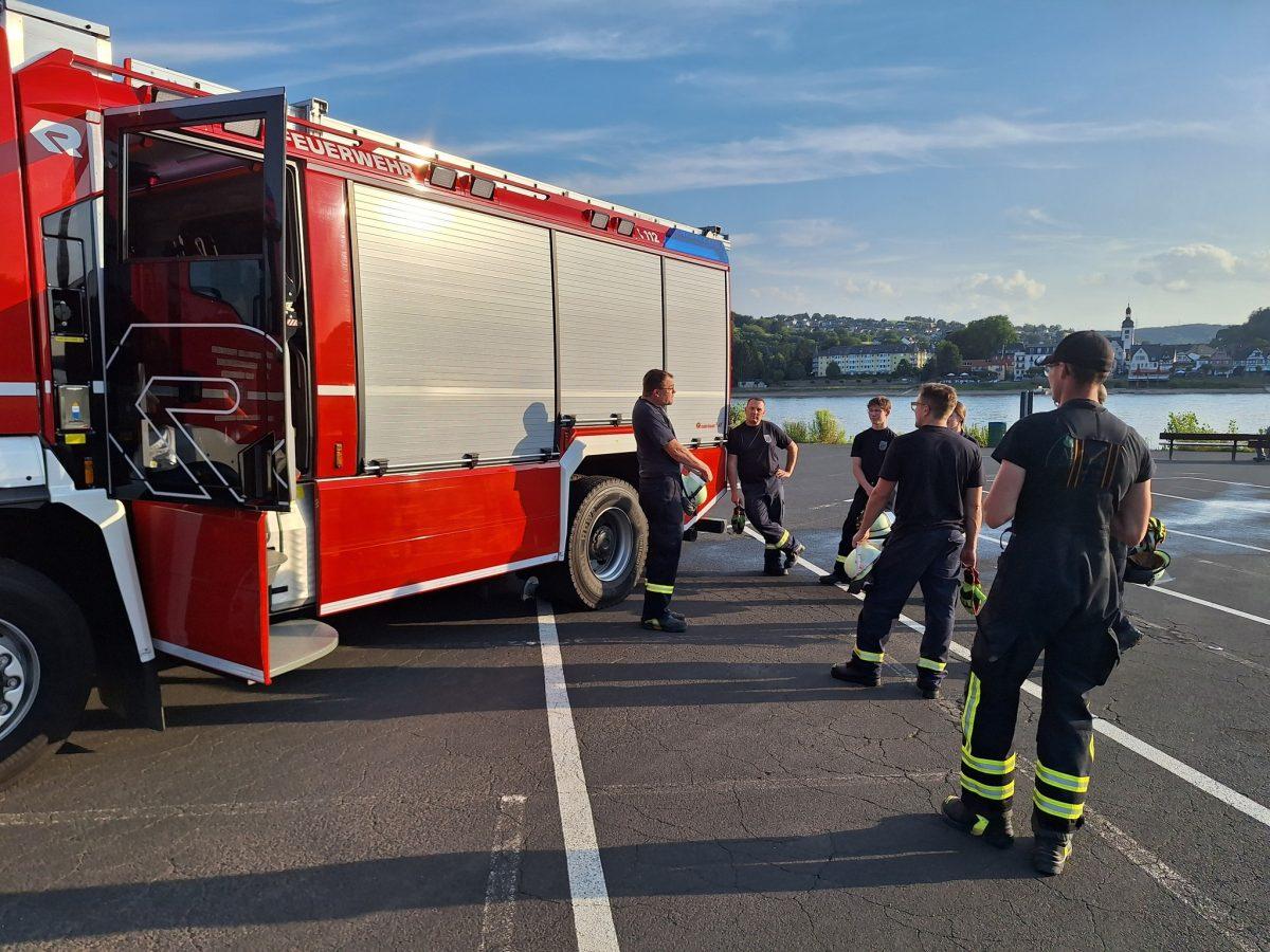 Gegen 12.30 Uhr am Sonntag alarmierte die Leitstelle Montabaur alle drei Feuerwehren der Verbandsgemeinde Bad Hönningen mit dem Einsatzstichwort „Wasser 3 – Personen im fließendem Gewässer – gekentertes Boot“. Parallel wurden durch die Leitstelle Koblenz die Einsatzkräfte der anderen Rheinseite, insbesondere die Feuerwehr und DLRG Andernach alarmiert. Auch der Rettungsdienst, die Polizei und die Wasserschutzpolizei wurden alarmiert.